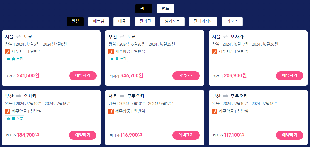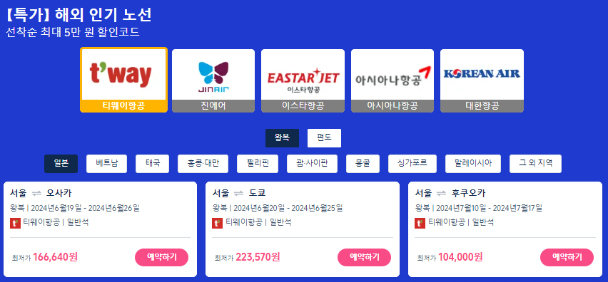 제주뿐 아니라 일본, 베트남 등 할인된 가격으로